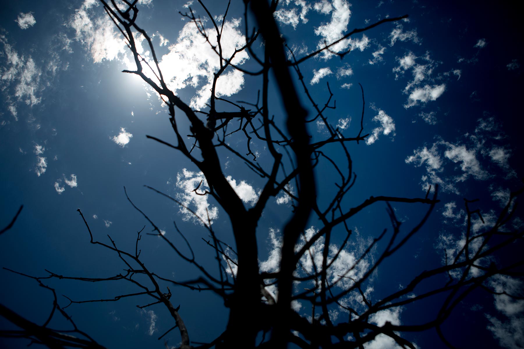 In this June 13, 2015 photo, the sun beats down on the Sahnish Scouts as they move across sections of land beyond the banks of the Little Missouri River. © Kristina Barker