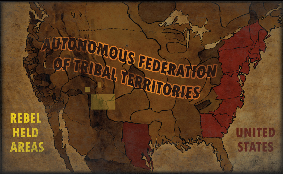 North of Niinéniiniicíe, past the ghost towns and overgrown suburbs, a network of smart grids and renewable energy projects blankets the plains. To the east lie the contested territories of the Oceti Sakowin and Osage; to the south, the Pueblo districts; to the north, the Plains Confederacy; and to the west, just over the mountains, the last remaining rebel-held province in the region.